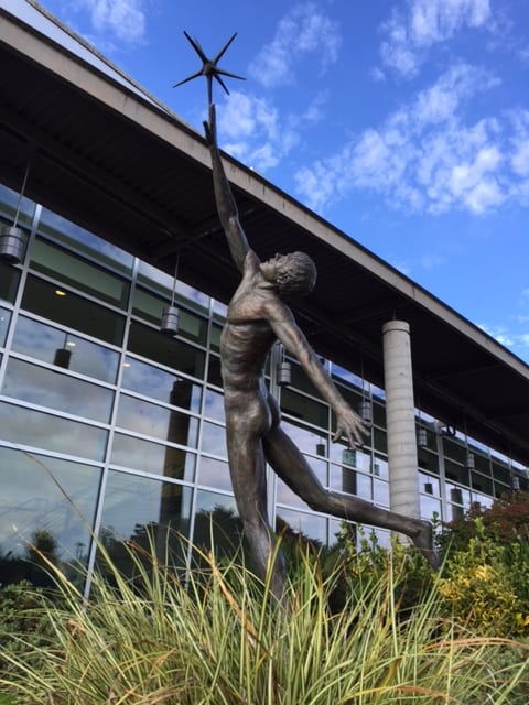 Jim and his wife had three children, including a boy and girl who were twins. For most people, little ones can be a handful, but after twenty-five years of marriage, tragedy struck their lives with the passing of his wife due to breast cancer. Suddenly, Jim was left to raise three teenagers, alone. A few years later, heartbreak once more hit home. His son, Christopher, the twin boy, always had difficulty with balance and coordination throughout his childhood, but the symptoms progressed. Christopher was eventually diagnosed with a rare genetic and progressive neurogenic disease, Friedreich’s Ataxia, Though Christopher was in a wheelchair during his senior year at Adna High School, he graduated as salutatorian in 1991. The insidious disease took Christopher’s life in February of 1995 at the young age of twenty-two. A bronze statue of a young man reaching toward a star that is just out of reach, titled Reach for the Stars, is displayed on the campus of Centralia College. The sculpture, a life-size bronze of Christopher, was commissioned by the school in 2001. Jim created this beautiful sculpture in honor of his son.