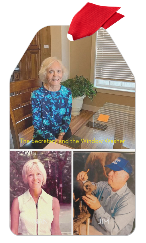 Throughout this journey of connecting the Window Washer and the Secretary, I realized I have gained two new friends who have also given me tremendous joy and lots of shared laughter along the way. Nan lives just around the corner from me, and we see each other at least once a week. I always call her before I head over to her house—when I get there, I ring the doorbell and give our special secret knock so she will know it’s me. Each time I talk to Jim on the phone, and before we hang up, he always tells me, “Next time you see Nan, give her a hug and a wink for me.” I always do.