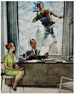 *If by chance you haven’t already done so, your HOMEWORK is to Google Rockwell’s The Window Washer and University Club paintings