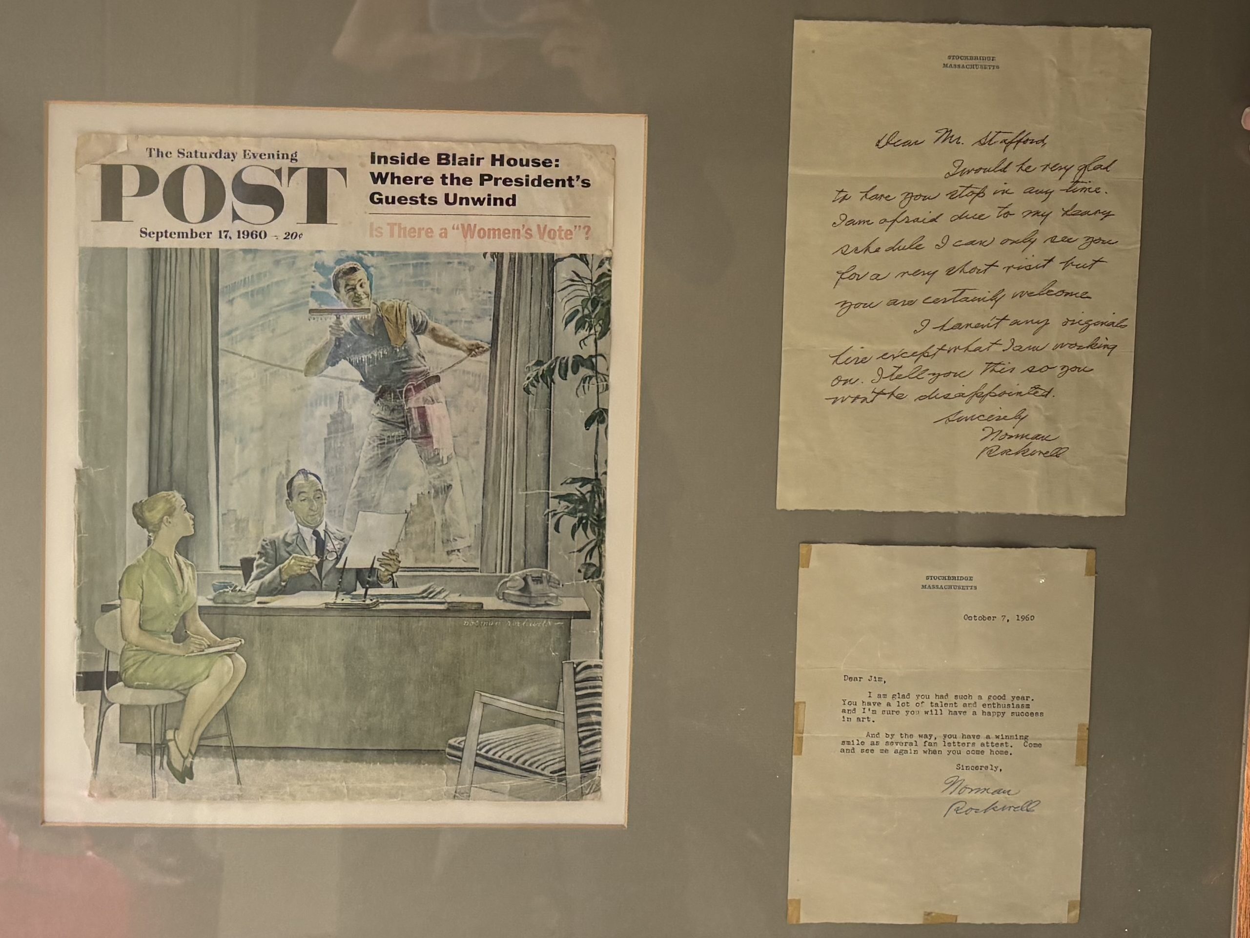 The prints of The Window Washer that hang in both Jim’s and Nan’s houses have much more meaning to them since that legendary dog walk. The lives they’ve lived, their generosity toward others, and an abundance of life experiences are more than that singular moment in time with the innocent wink and a glance of hope. Nan and Jim are no longer strangers, but even if they don’t ever meet in person, they will always carry each other in their hearts as new friends with a common thread. Alongside the print of The Window Washer that proudly hangs in Jim’s house are the two framed letters that Rockwell wrote to him what seems like another lifetime ago. Funny, come to think of it, whenever Jim and Nan pass by and glance at The Window Washer hanging on their walls, they too, are the observers of their own youthful selves in that fictional moment sixty-five years ago. They are reminded that the magical storybook fairy-tale truly exists, not just within the lad and the maiden, but also the millions of us that have been a part of their journey.